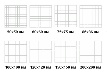 РАЗМЕРЫ ЯЧЕЕК:
